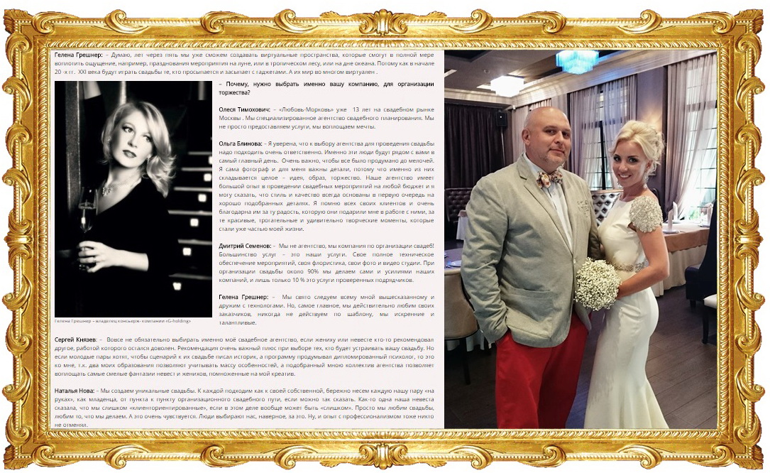 Журналисты информационно - новостного портала «Рублевка 24» задали несколько вопросов организаторам свадеб, которые зачастую проводят свои мероприятия на Рублевке.